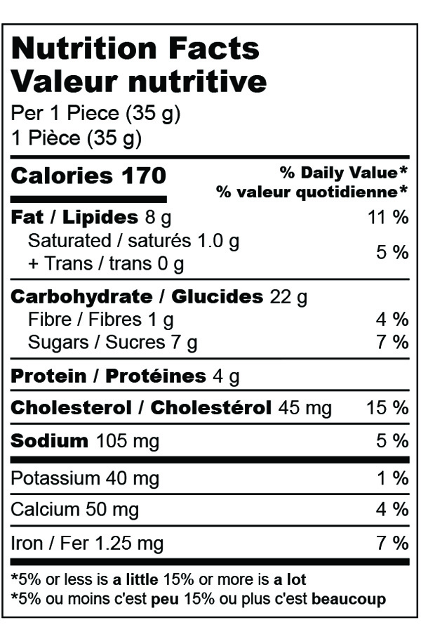Farine de blé, Oeufs, Sucre, Huile de canola, Poudre à pâte, Graines de pavot, Arôme naturel de citron, Zeste de citron, Sel.  Contient: Oeuf, Blé